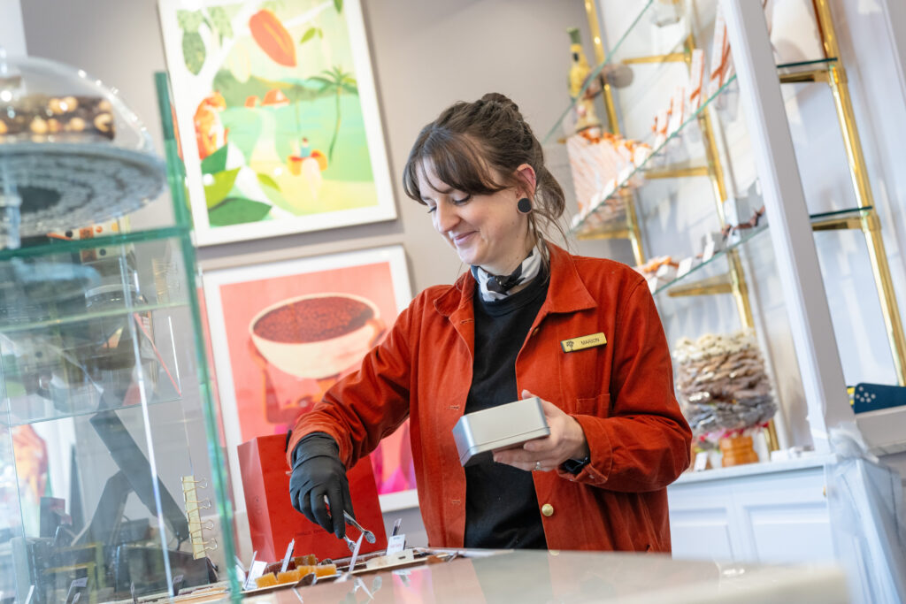 Nos vestes Kidur incarnent parfaitement l’esprit de notre maison : une élégance discrète, une qualité exemplaire, un profond respect pour le travail artisanal et un engagement assuré. Qu’il s’agisse de confectionner un praliné croustillant, de tempérer un grand cru de chocolat noir, ou de conseiller un client sur une tablette de chocolat, nos collaborateurs le font désormais avec raffinement et confort.